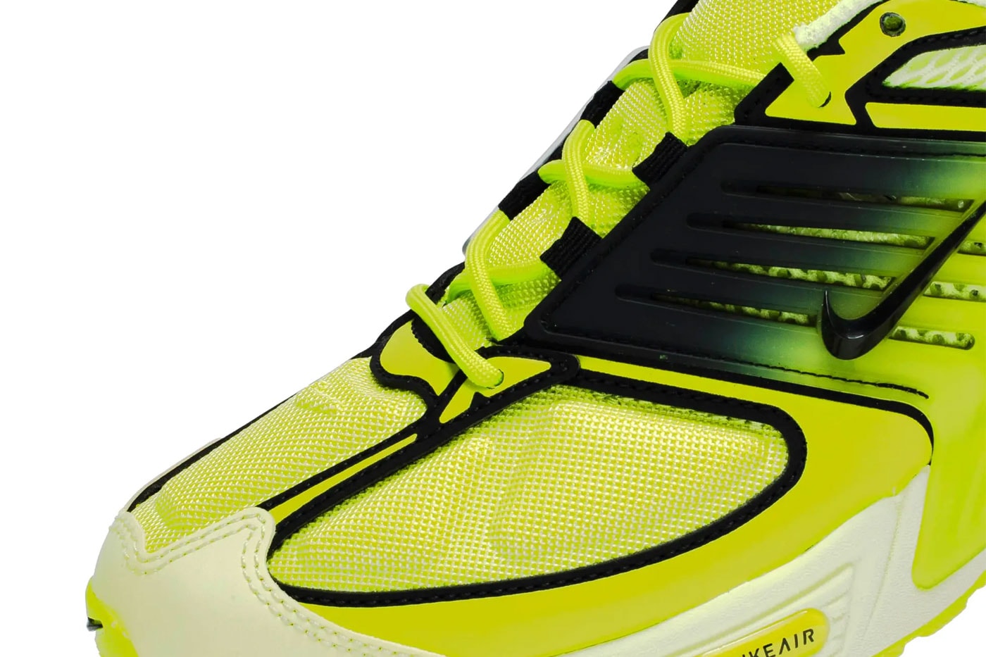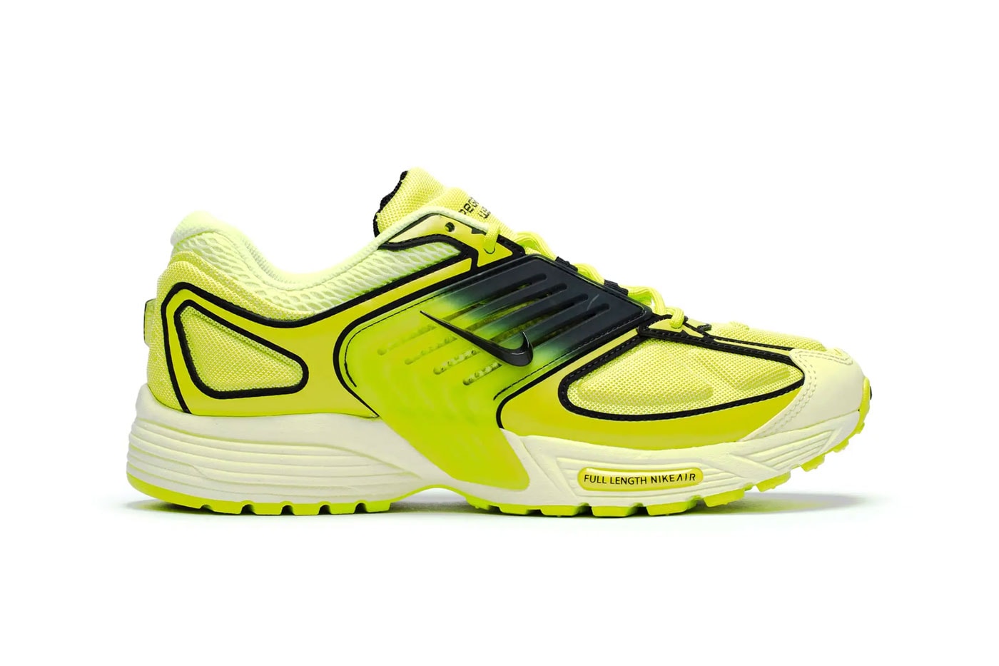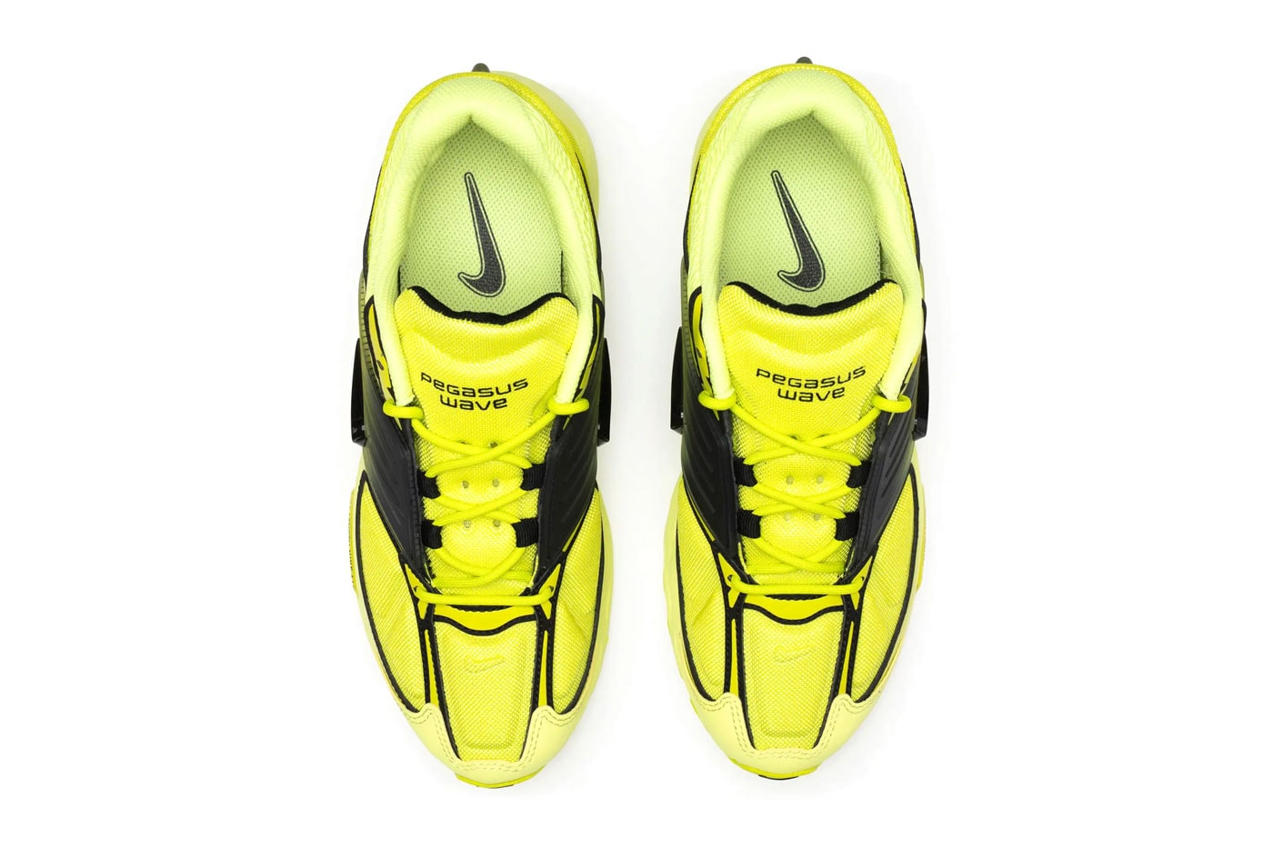 The Nike Air Pegasus Wave makes its latest debut in the vibrant “Light Lemon Twist” colorway. The energetic “Light Lemon Twist” hue contrasts with bold black accents, accentuating the sneaker’s unique design elements, including a gradient skeletal cage that wraps the upper, providing both style and structural support. The upper combines refined twill with diamond-textured mesh, creating a sophisticated layered aesthetic while ensuring optimal ventilation.